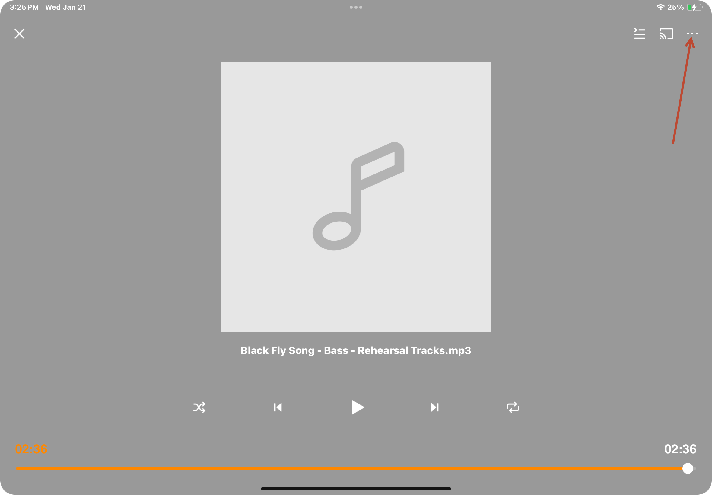 In Ipad or Mac, download a media player such as VLC Media Player (NOT VLC Video Player). That will create a VLC folder on your device. Copy mp3 files from your download folder to the VLC folder and they will be available to play in the VLC Player. Once the song is playing tap it to get the grey screen enlarged. Then tap the ‘…’ symbol at the top right when playing the song